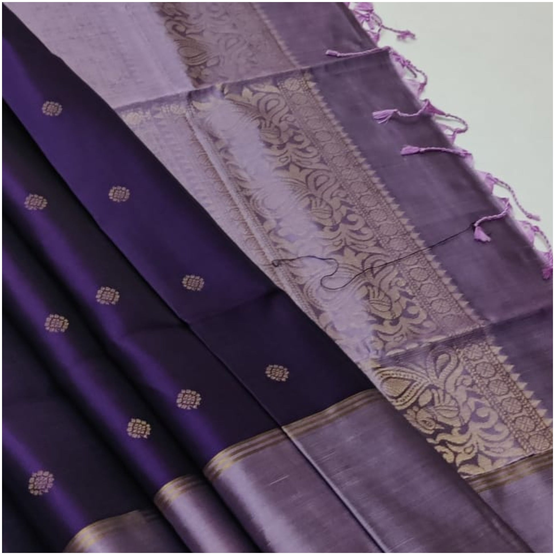Hues of Purple Pure Handloom Double Warp Soft Silk Saree