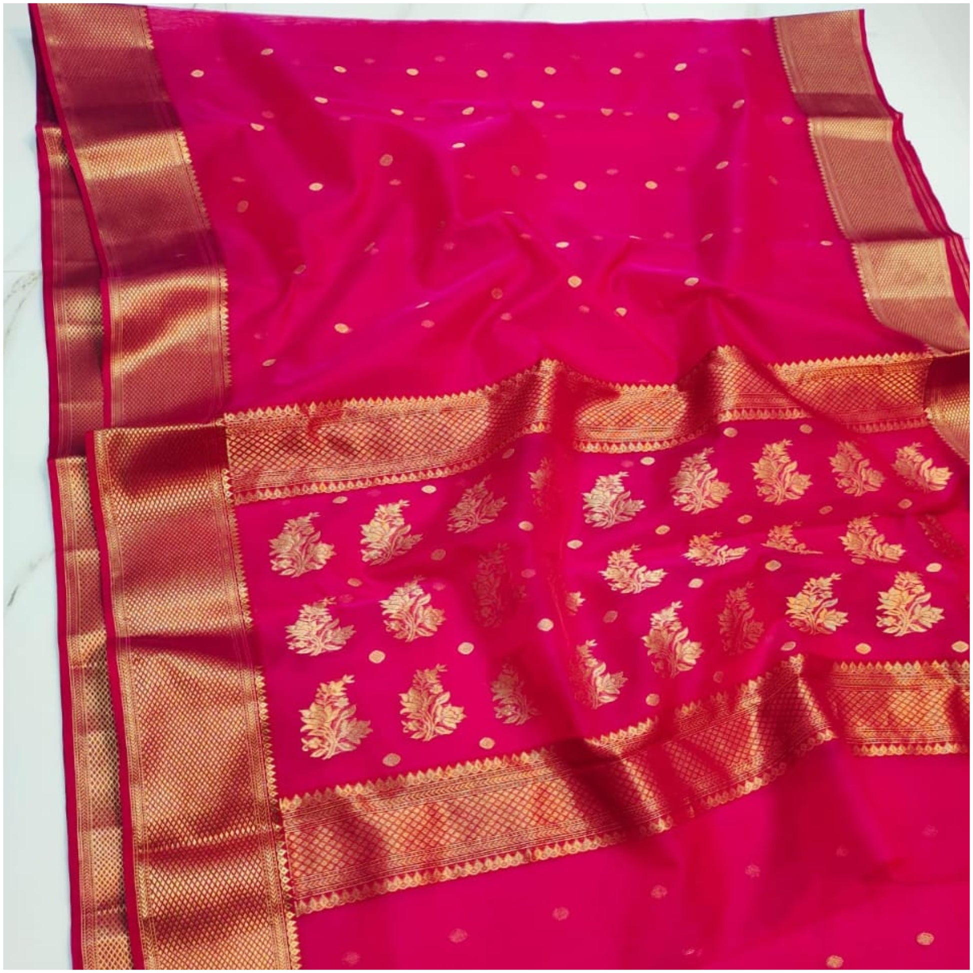 Rich Pink Pure Handloom Katan Chanderi Silk Saree